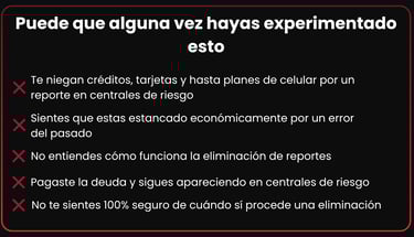 Aprende a eliminar reportes negativos en centrales de riesgo con criterio legal, evita errores que le cuestan dinero a las personas y conviértelo en una habilidad que puede generarte ingresos